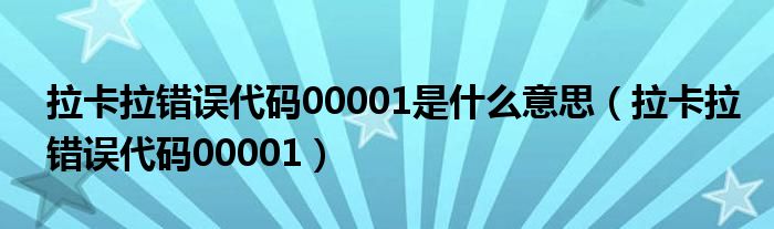 大家好,跳跳为你解答以上问题。拉卡拉错误代码00001是什么意思,拉卡拉错误代码00001这个问题很多人还不知道,现在让我们一起来看看吧!