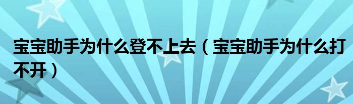 大家好,跳跳为你解答以上问题。宝宝助手为什么登不上去,宝宝助手为什么打不开这个问题很多人还不知道,现在让我们一起来看看吧!