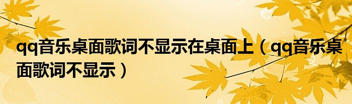 大家好,跳跳为你解答以上问题。qq音乐桌面歌词不显示在桌面上,qq音乐桌面歌词不显示这个问题很多人还不知道,现在让我们一起来看看吧!