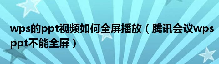 大家好,跳跳为你解答以上问题。wps的ppt视频如何全屏播放,腾讯会议wpsppt不能全屏这个问题很多人还不知道,现在让我们一起来看看吧!