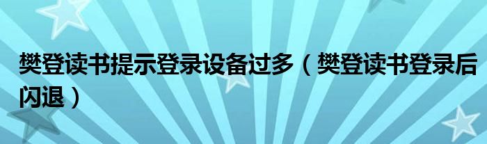 大家好,跳跳为你解答以上问题。樊登读书提示登录设备过多,樊登读书登录后闪退这个问题很多人还不知道,现在让我们一起来看看吧!