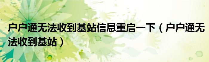 大家好,跳跳为你解答以上问题。户户通无法收到基站信息重启一下,户户通无法收到基站这个问题很多人还不知道,现在让我们一起来看看吧!