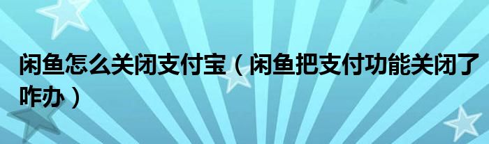 大家好,跳跳为你解答以上问题。闲鱼怎么关闭支付宝,闲鱼把支付功能关闭了咋办这个问题很多人还不知道,现在让我们一起来看看吧!