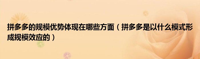 大家好,跳跳为你解答以上问题。拼多多的规模优势体现在哪些方面,拼多多是以什么模式形成规模效应的这个问题很多人还不知道,现在让我们一起来看看吧!