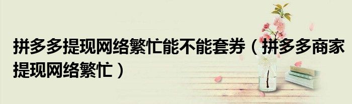 大家好,跳跳为你解答以上问题。拼多多提现网络繁忙能不能套券,拼多多商家提现网络繁忙这个问题很多人还不知道,现在让我们一起来看看吧!