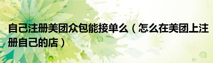 大家好,跳跳为你解答以上问题。自己注册美团众包能接单么,怎么在美团上注册自己的店这个问题很多人还不知道,现在让我们一起来看看吧!