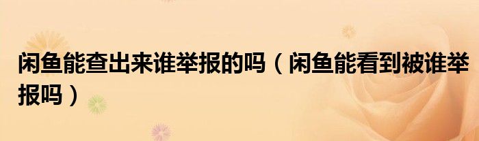 大家好,跳跳为你解答以上问题。闲鱼能查出来谁举报的吗,闲鱼能看到被谁举报吗这个问题很多人还不知道,现在让我们一起来看看吧!
