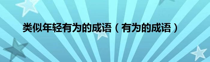 大家好,小晋来为大家解答以下问题,关于类似年轻有为的成语,有为的成语很多人还不知道,今天让我们一起来看看吧!