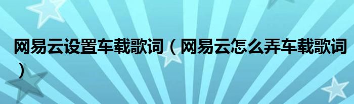 大家好,跳跳为你解答以上问题。网易云设置车载歌词,网易云怎么弄车载歌词这个问题很多人还不知道,现在让我们一起来看看吧!