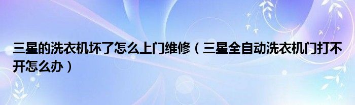 大家好,小叶为你解答以上问题。三星的洗衣机坏了怎么上门维修,三星全自动洗衣机门打不开怎么办这个问题很多人还不知道,现在让我们一起来看看吧!