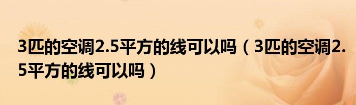 大家好,小叶为你解答以上问题。3匹的空调2.5平方的线可以吗,3匹的空调2.5平方的线可以吗这个问题很多人还不知道,现在让我们一起来看看吧!