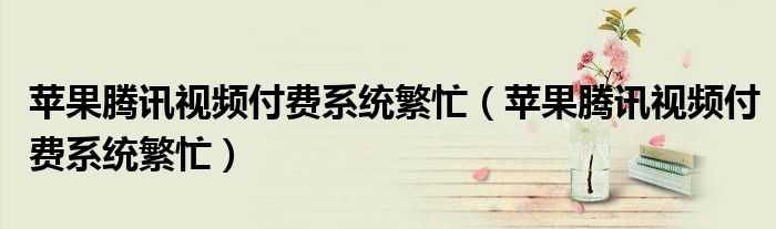 大家好,跳跳为你解答以上问题。苹果腾讯视频付费系统繁忙,苹果腾讯视频付费系统繁忙这个问题很多人还不知道,现在让我们一起来看看吧!