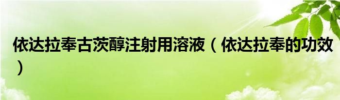 大家好,linda来为大家解答以上的问题。依达拉奉古茨醇注射用溶液,依达拉奉的功效很多人还不知道,现在让我们一起来看看吧!