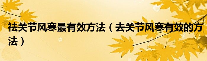 1、一般来说,去关节风寒有效的方法是用具有祛风散寒、除湿、通络止痛功能的中草药内服或外洗治疗。