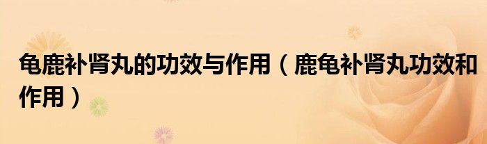 大家好,linda来为大家解答以上的问题。龟鹿补肾丸的功效与作用,鹿龟补肾丸功效和作用很多人还不知道,现在让我们一起来看看吧!