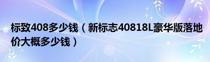 标志408豪华版1.6T指导价14.97w,目前优惠在3w左右,在加上购置税,保险,车船税,上牌,全款落地13.5-14w,各地优惠幅度不同价格可能有差别,仅供参考,望采纳!