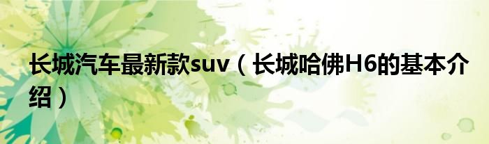 大家好,小常来为大家解答以下问题,对于长城汽车最新款suv,长城哈佛H6的基本介绍很多人还不知道,今天让我们一起来看看吧!