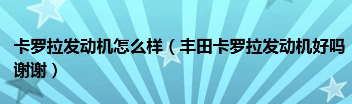 大家好,小常来为大家解答以下问题,对于卡罗拉发动机怎么样,丰田卡罗拉发动机好吗谢谢很多人还不知道,今天让我们一起来看看吧!