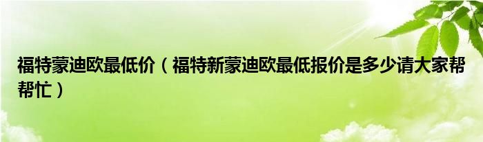 大家好,小常来为大家解答以下问题,对于福特蒙迪欧最低价,福特新蒙迪欧最低报价是多少请大家帮帮忙很多人还不知道,今天让我们一起来看看吧!