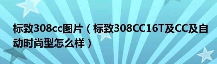 1,标致308CC16T CC 自动时尚型怎么样:一般般 外形看个人喜欢 配置不高 动力还是很普通 CC类一年销量实在可怜 法国人的浪漫挺无趣的