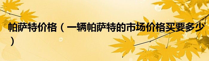 1,一辆帕萨特的市场价格买要多少:配置不同大概在16-30W之间