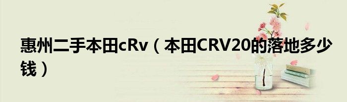 大家好,小常来为大家解答以下问题,对于惠州二手本田cRv,本田CRV20的落地多少钱很多人还不知道,今天让我们一起来看看吧!