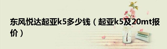 5,东风悦达起亚K5多少钱一辆 :厂家指导价:15.98万-24.98万 商家报价:15.98万-24.98万 视不同的配置。 记得采纳啊