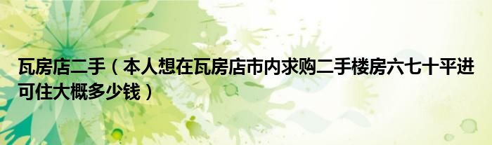 1,本人想在瓦房店市内求购二手楼房六七十平进可住大概多少钱 :瓦房电新楼盘大概6000左右 你想想吧 希望对你有点帮助
