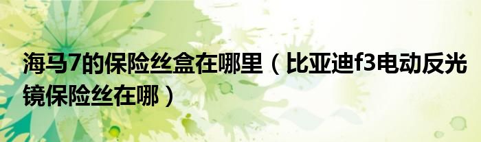 大家好,小常来为大家解答以下问题,对于海马7的保险丝盒在哪里,比亚迪f3电动反光镜保险丝在哪很多人还不知道,今天让我们一起来看看吧!