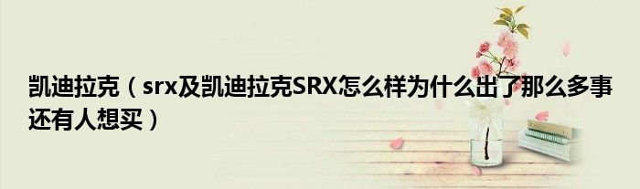 1,凯迪拉克SRX怎么样为什么出了那么多事还有人想买 :凯迪拉克SRX是凯迪拉克旗舰中型suv车型,每辆汽车都有或多或少的问题,每辆车的车况并不一样,但是srx口碑还是挺好的