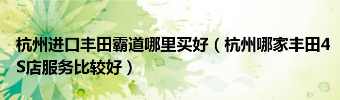 大家好,小常来为大家解答以下问题,对于杭州进口丰田霸道哪里买好,杭州哪家丰田4S店服务比较好很多人还不知道,今天让我们一起来看看吧!