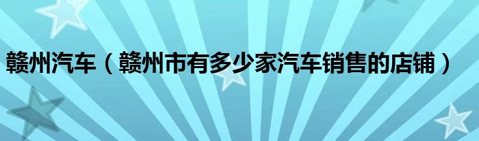1,赣州市有多少家汽车销售的店铺 :展开全部好多好多~~~在迎宾大道还有HONDA 标志这些名车专卖~在滨江大道还有奔驰的专卖~~~ 在客家大道有一个赣州国际汽车城里面有些企业~~可以去看看~品牌太多~就不一一道来了~