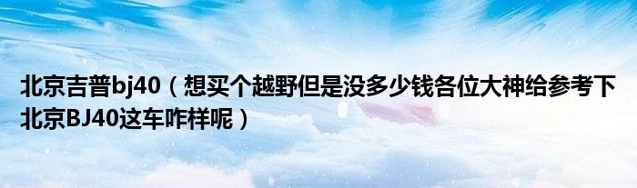 大家好,小常来为大家解答以下问题,对于北京吉普bj40,想买个越野但是没多少钱各位大神给参考下北京BJ40这车咋样呢很多人还不知道,今天让我们一起来看看吧!