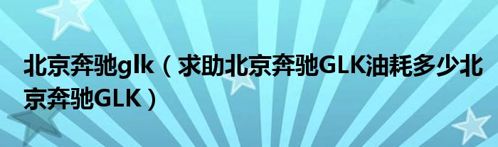 1,求助北京奔驰GLK油耗多少北京奔驰GLK:北京奔驰GLK油耗8.80。新手9.00。北京奔驰GLK价格是46万。经销商好几家呢。