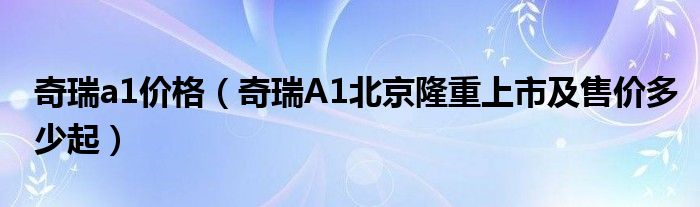 大家好,小常来为大家解答以下问题,对于奇瑞a1价格,奇瑞A1北京隆重上市及售价多少起很多人还不知道,今天让我们一起来看看吧!