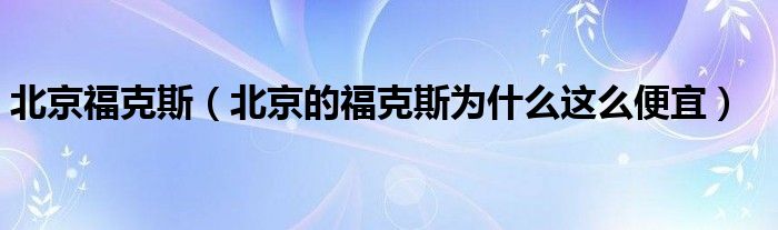 北京福克斯(北京的福克斯为什么这么便宜)