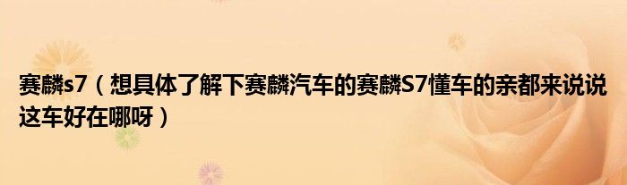 大家好,小常来为大家解答以下问题,对于赛麟s7,想具体了解下赛麟汽车的赛麟S7懂车的亲都来说说这车好在哪呀很多人还不知道,今天让我们一起来看看吧!