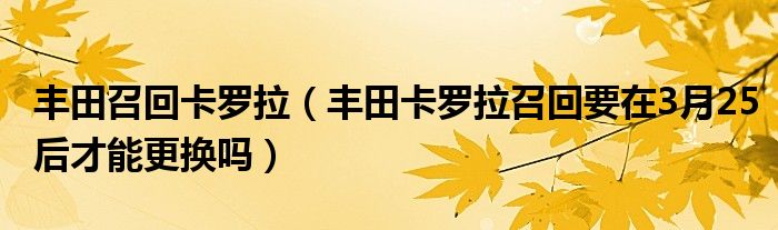 大家好,小常来为大家解答以下问题,对于丰田召回卡罗拉,丰田卡罗拉召回要在3月25后才能更换吗很多人还不知道,今天让我们一起来看看吧!