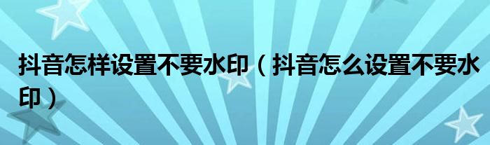 抖音怎样设置不要水印(抖音怎么设置不要水印)