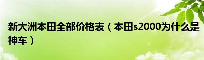 大家好,阳阳来为大家讲解下。新大洲本田全部价格表,本田s2000为什么是神车很多人还不知道,现在让我们一起来看看吧!