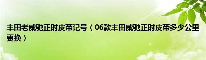 大家好,阳阳来为大家讲解下。丰田老威驰正时皮带记号,06款丰田威驰正时皮带多少公里更换很多人还不知道,现在让我们一起来看看吧!