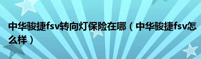 中华骏捷fsv转向灯保险在哪(中华骏捷fsv怎么样)
