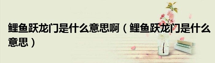 大家好,小晋来为大家解答以下问题,关于鲤鱼跃龙门是什么意思啊,鲤鱼跃龙门是什么意思很多人还不知道,今天让我们一起来看看吧!