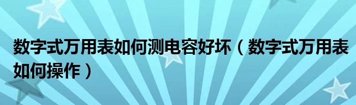 大家好,阳阳来为大家讲解下。数字式万用表如何测电容好坏,数字式万用表如何操作很多人还不知道,现在让我们一起来看看吧!