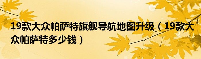 大家好,阳阳来为大家讲解下。19款大众帕萨特旗舰导航地图升级,19款大众帕萨特多少钱很多人还不知道,现在让我们一起来看看吧!