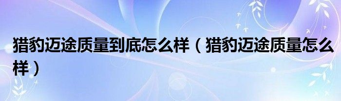 大家好,阳阳来为大家讲解下。猎豹迈途质量到底怎么样,猎豹迈途质量怎么样很多人还不知道,现在让我们一起来看看吧!