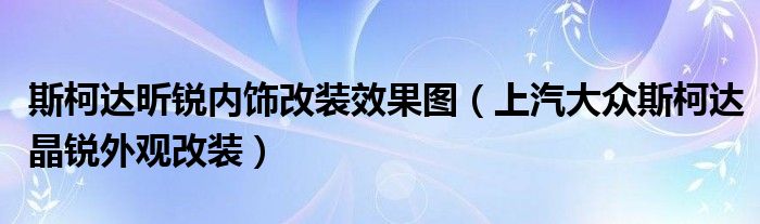 大家好,阳阳来为大家讲解下。斯柯达昕锐内饰改装效果图,上汽大众斯柯达晶锐外观改装很多人还不知道,现在让我们一起来看看吧!