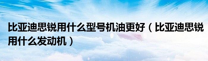 大家好,阳阳来为大家讲解下。比亚迪思锐用什么型号机油更好,比亚迪思锐用什么发动机很多人还不知道,现在让我们一起来看看吧!