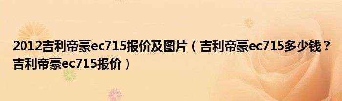大家好,小美来为大家解答以上问题。2012吉利帝豪ec715报价及图片,吉利帝豪ec715多少钱?吉利帝豪ec715报价很多人还不知道,现在让我们一起来看看吧!
