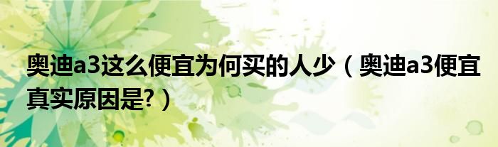 大家好,小美来为大家解答以上问题。奥迪a3这么便宜为何买的人少,奥迪a3便宜真实原因是?很多人还不知道,现在让我们一起来看看吧!